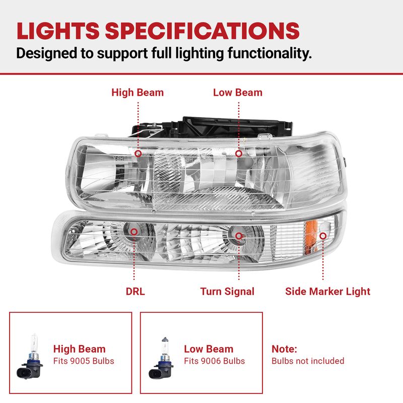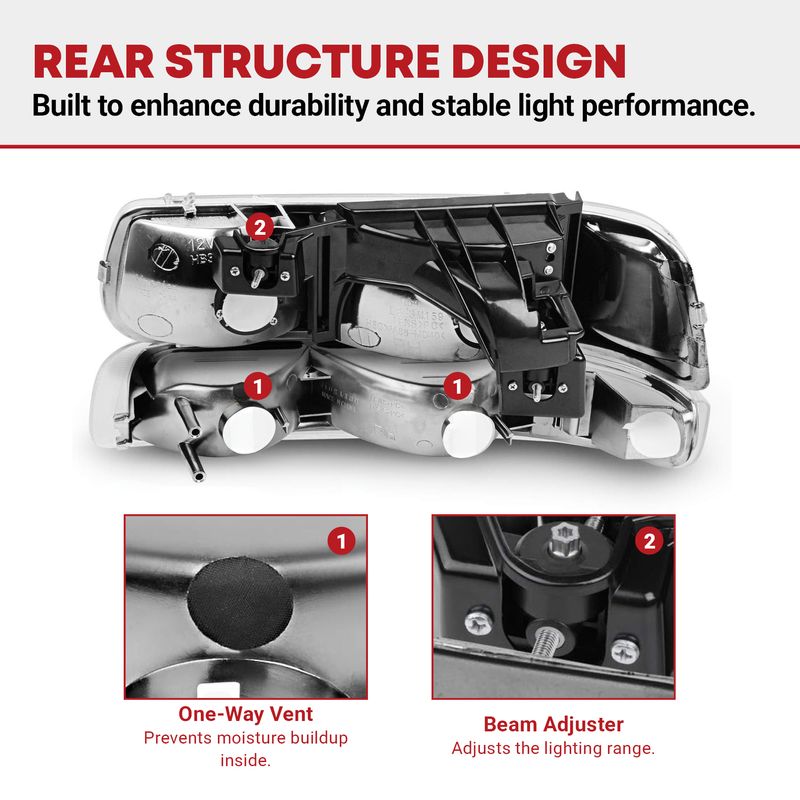 This upgraded headlight assembly adopts special meticulous chrome plating to increase the brightness and ultra-wide angle for better visibility in any dusky conditions to make your drive safer.
