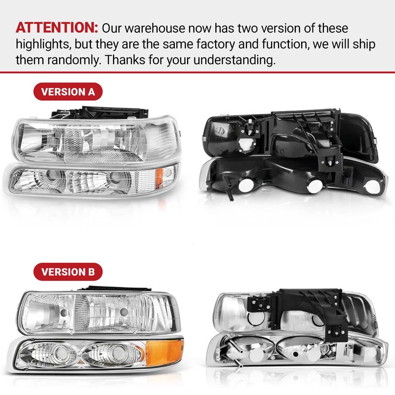 Note: Our warehouse has two versions of these headlights, but they are the same factory and function, we will ship them randomly, thanks for your understanding.
