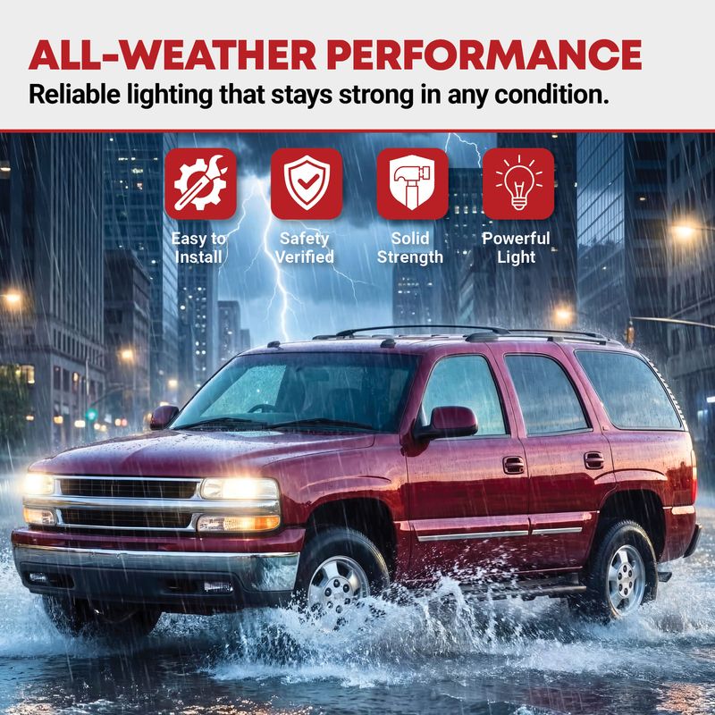 The superior lens features good transmission, high toughness, and excellent UV resistance to prevent yellowing & cracking; and the upgraded housing is shock-proof and heat-proof for ensuring better durability compared with other headlights.