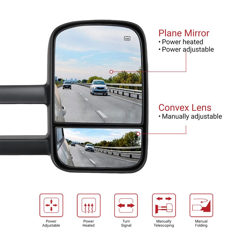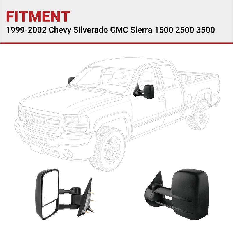 YITAMOTOR Towing mirrors perfectly fit for 1999-2002 Chevy Silverado GMC Sierra 1500 2500 3500, to replace the factory mirrors. They make perfect replacements with great upgrades that have good cost savings over the dealer parts.