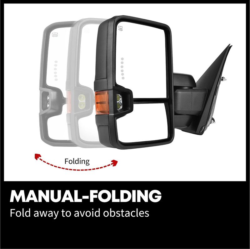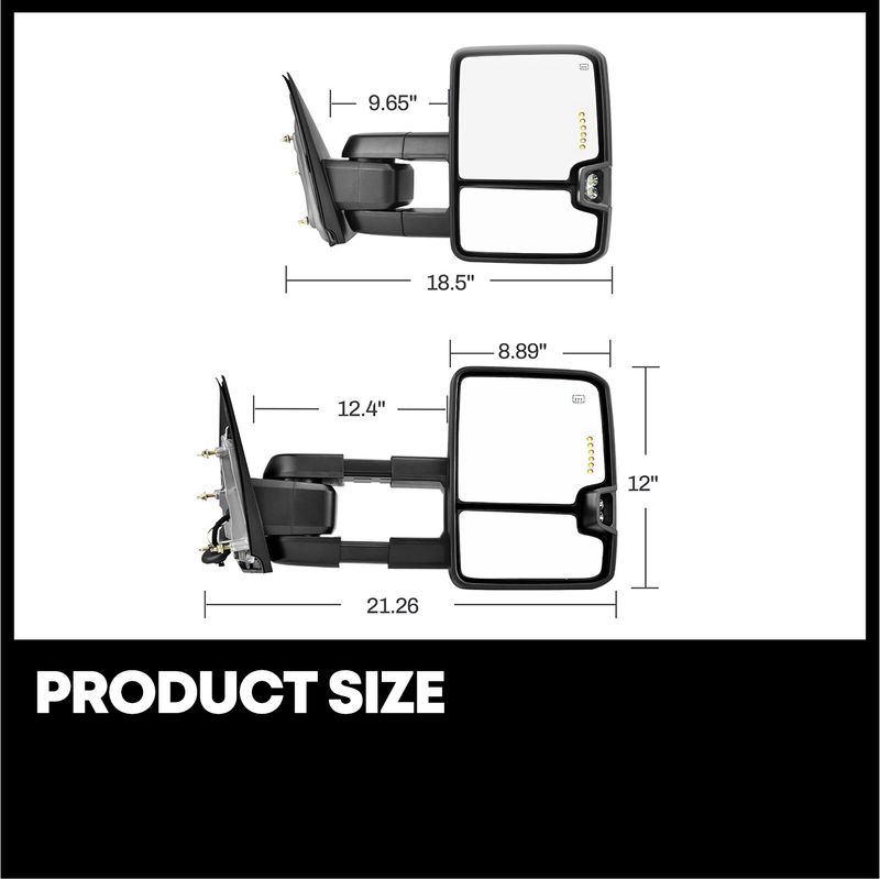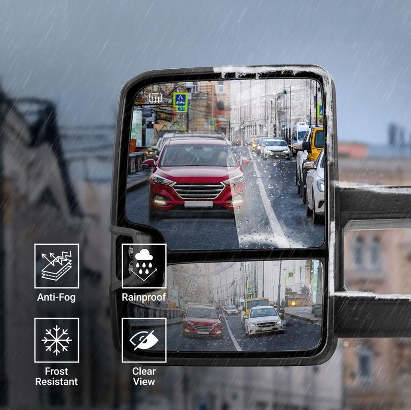 Featuring a power-heated mirror, the manually adjustable convex lens, led turn signal light, puddle light, manual telescoping & manual folding, the multifunctional side mirrors can strikingly enhance your driving experience.