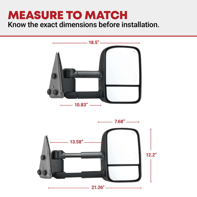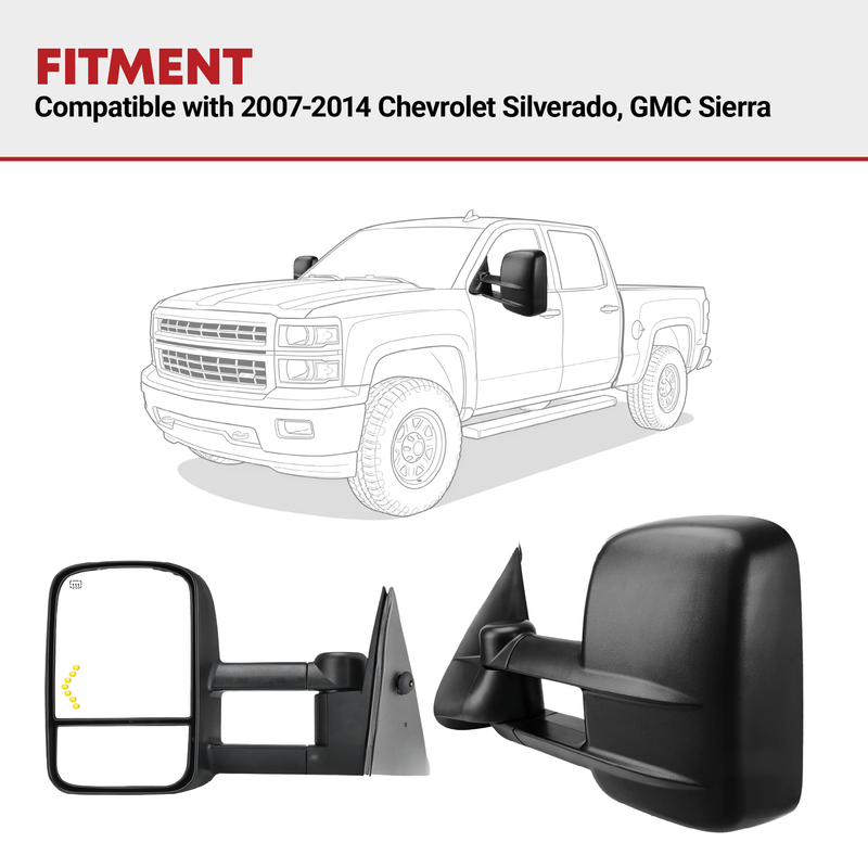 Replacement trailer tow mirrors work for the compatible vehicles with listed functions only. If your vehicle does not have listed functions, these mirrors may not function properly.