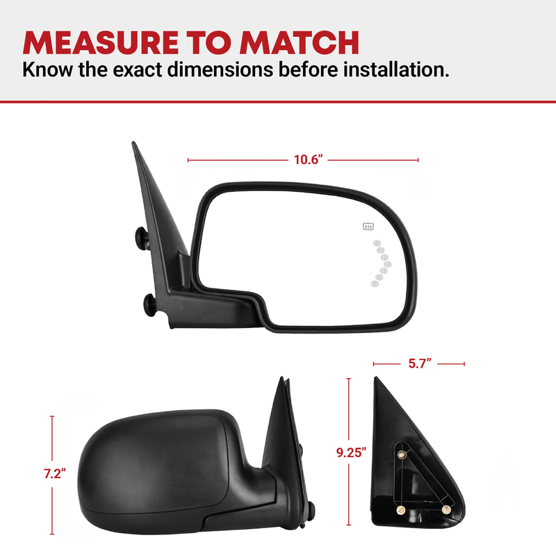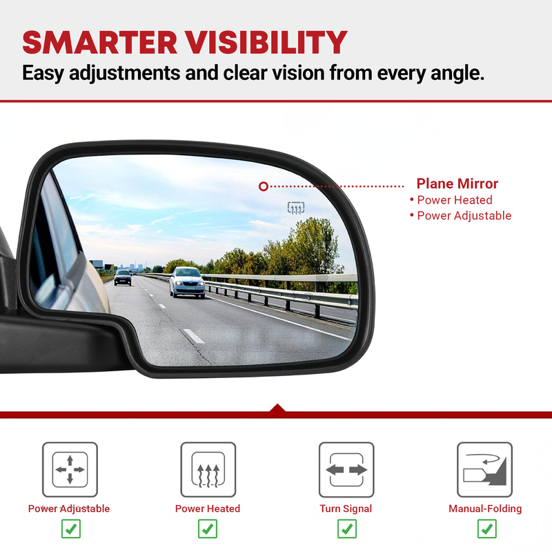 This YITAMOTOR mirror was engineered to look, fit and function like the original mirror assembly for your vehicle's specific year, make, and model. Upgrade to our high-quality towing mirror today and enjoy a safer, more enjoyable driving experience.