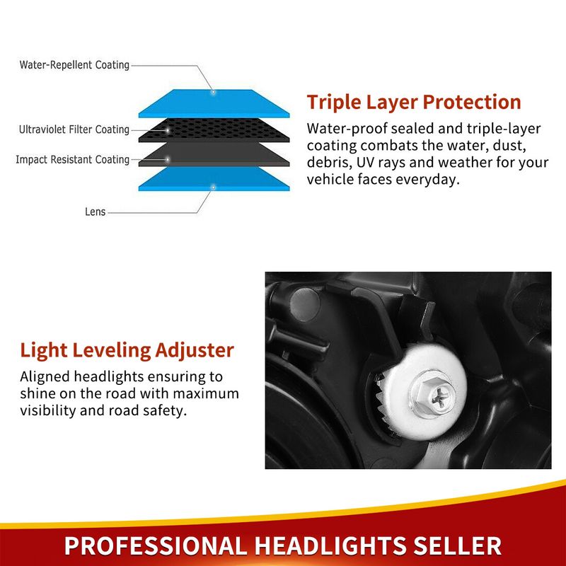 PC lens and seamless melding ensure headlights work well in any weather, which provides you with free driving.