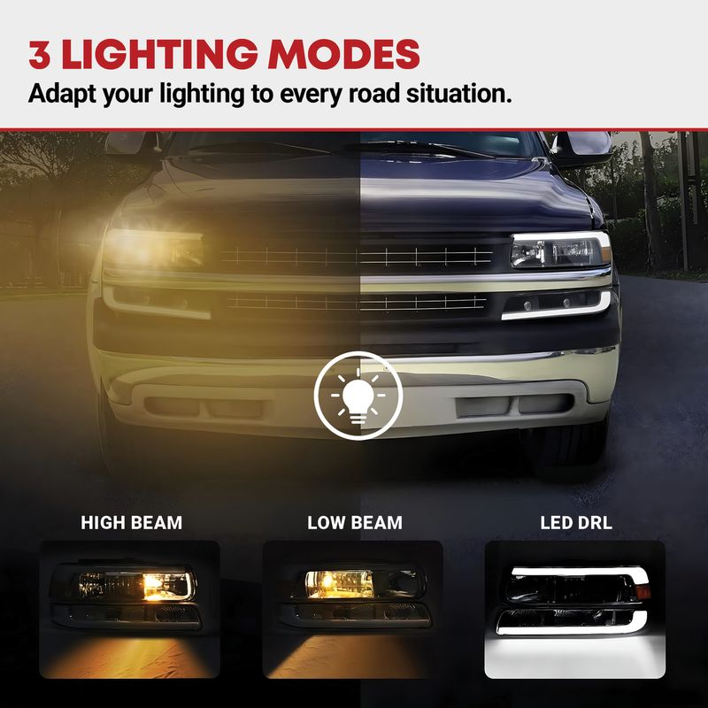 You can easily bolt-on replacement for your Chevy Silverado headlights, just connect the DRL to your car wiring. The attached user instruction makes the assembly more straightforward.