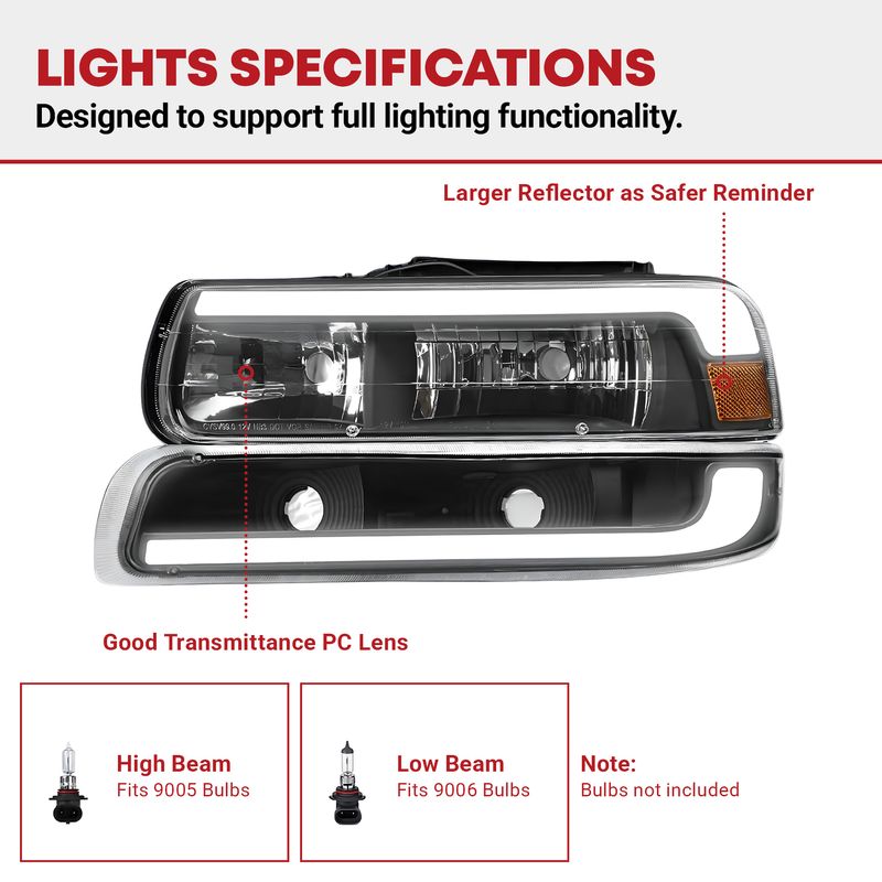This perfect replacement for your SUV/Pickup Truck comes with Amber Reflectors and Clear Lenses, offering improved visibility and a sleek appearance.