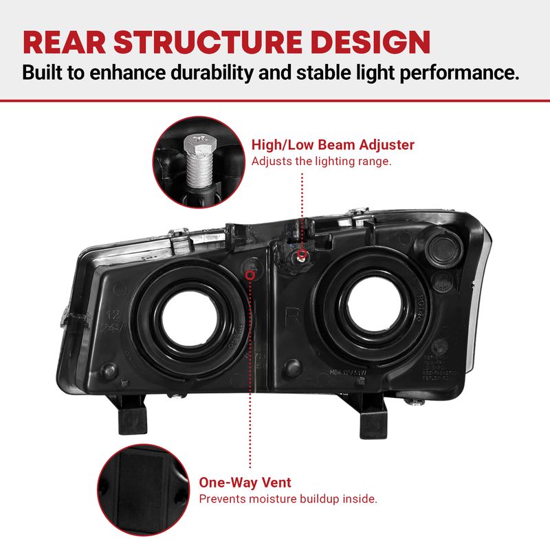 The fully sealed structure improves waterproof rating for effectively preventing moisture from entering the inside of headlights for longer service life.