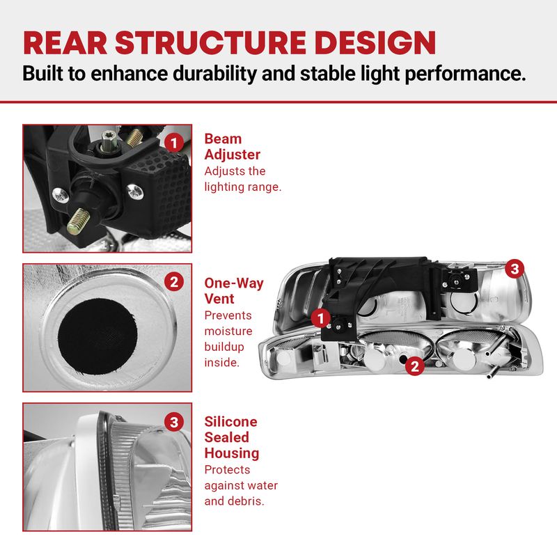 The fully sealed structure improves waterproof rating for effectively preventing moisture from entering the inside of headlights for longer service life.