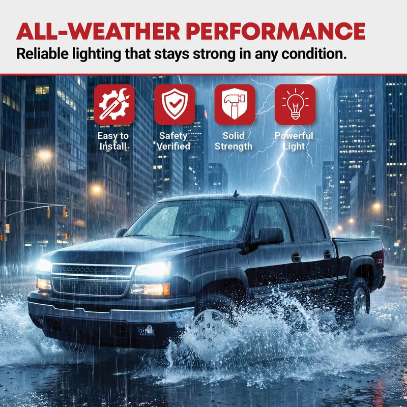 The specially sealed structure features excellent water resistance to prevent moisture from entering inside, brightening up your way clearly ahead when driving on rainy, muddy, and snowy days.