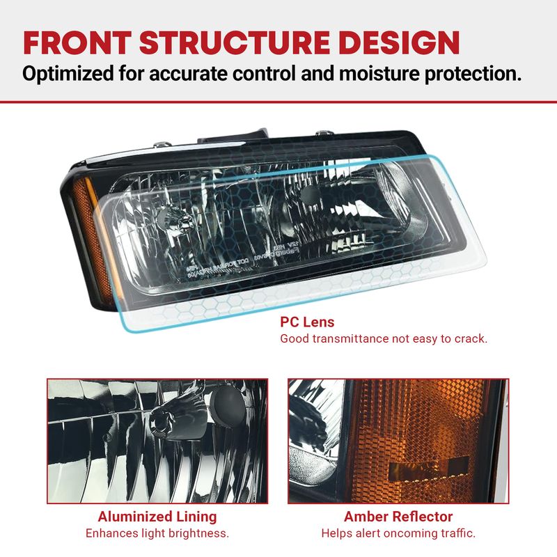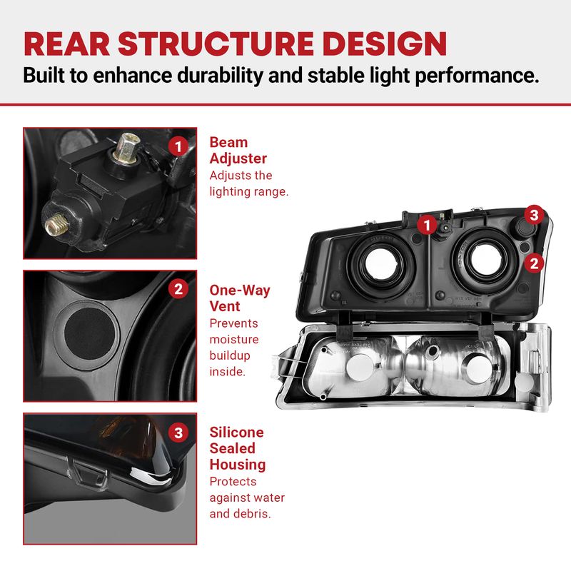 Our headlights are thoroughly tested to deliver smooth operation as well as for impact and heat resistance and endurance against rough road conditions over a long period of time. The units are completely sealed to prevent moisture from being trapped inside the housing.