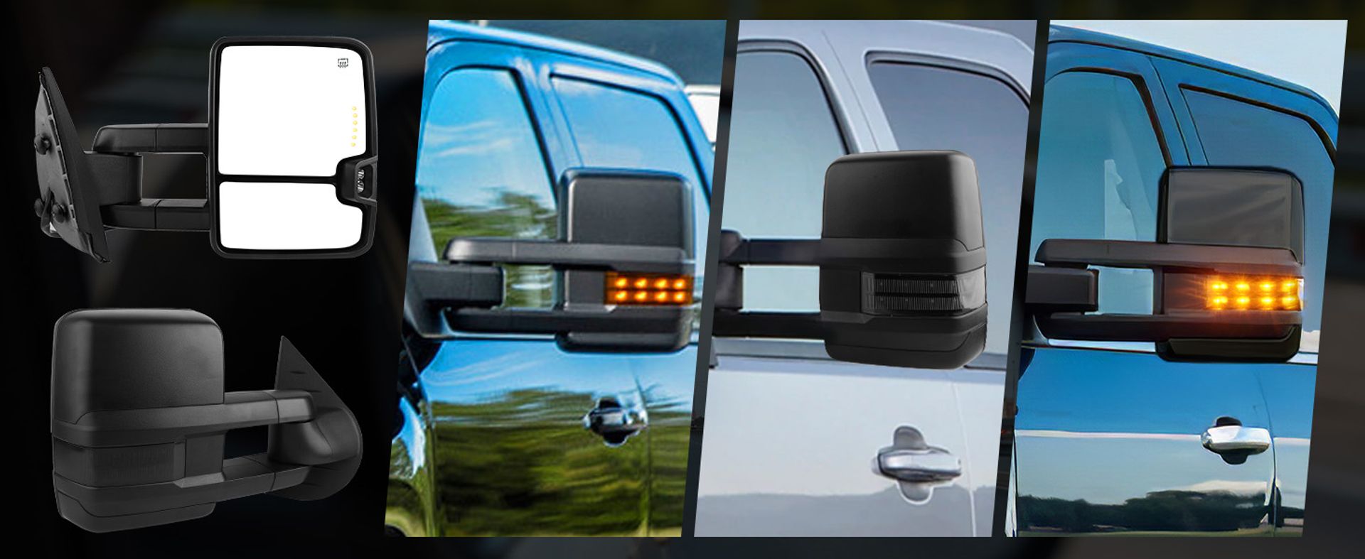 These towing mirrors are made by ultra-strong and lightweight black durable textured ABS plastic, with black shell, aluminum material base for more stable construction.