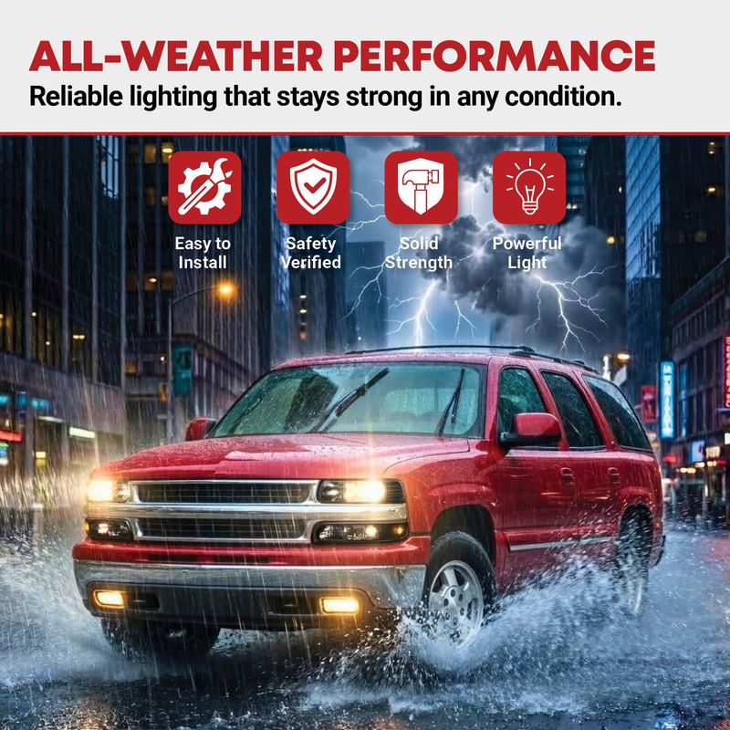 The superior lens features good transmission, high toughness, and excellent UV resistance to prevent yellowing & cracking; and the upgraded housing is shock-proof and heat-proof for ensuring better durability compared with other headlights.
