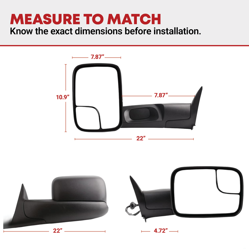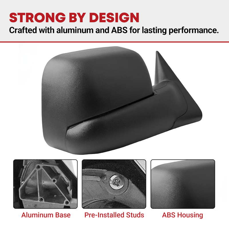 The towing mirrors can stably be installed on your vehicle as they adopt classic triangle construction, durable aluminum base and pre-installed studs.