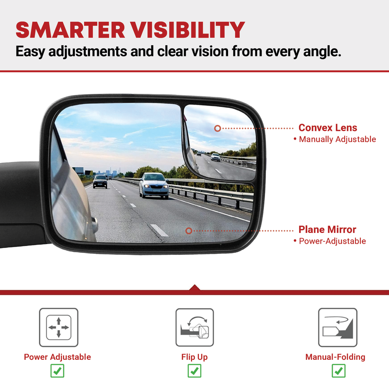 You need this MUST have extendable towing mirrors to KEEP YOUR DRIVING IN SAFETY.