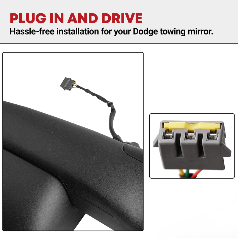 Just simply connect the plugs of the trailer towing mirror to the corresponding power cord, no drilling or modifications required.