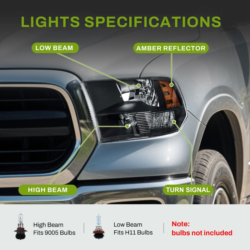 (Not fit 2010-up Ram with factory projector LED style headlights)
