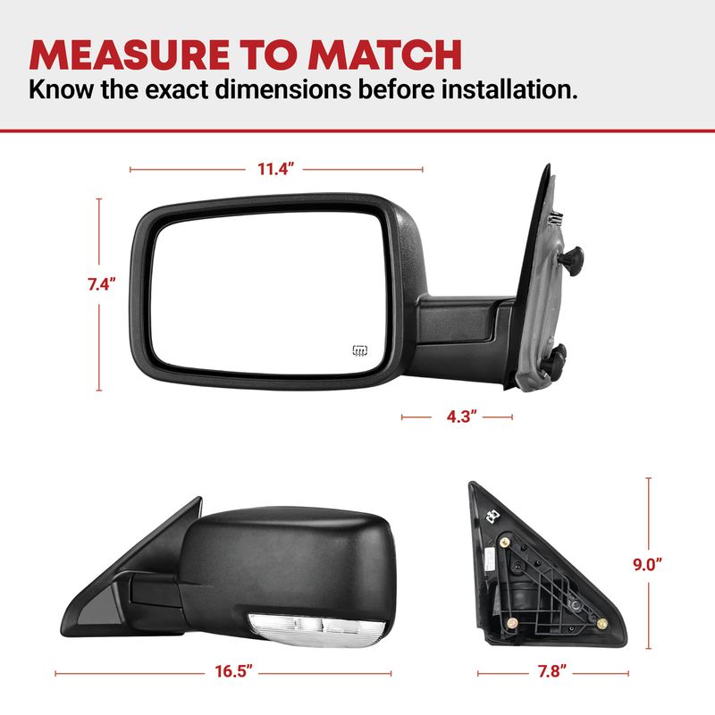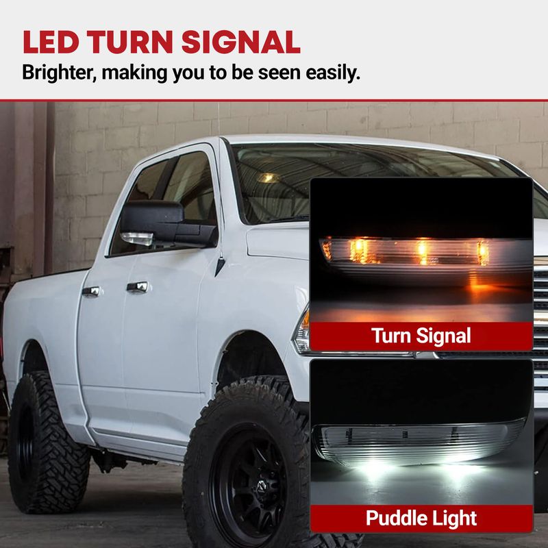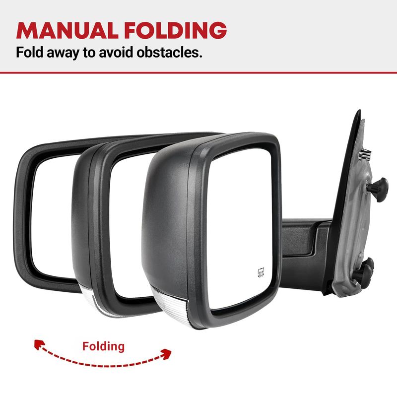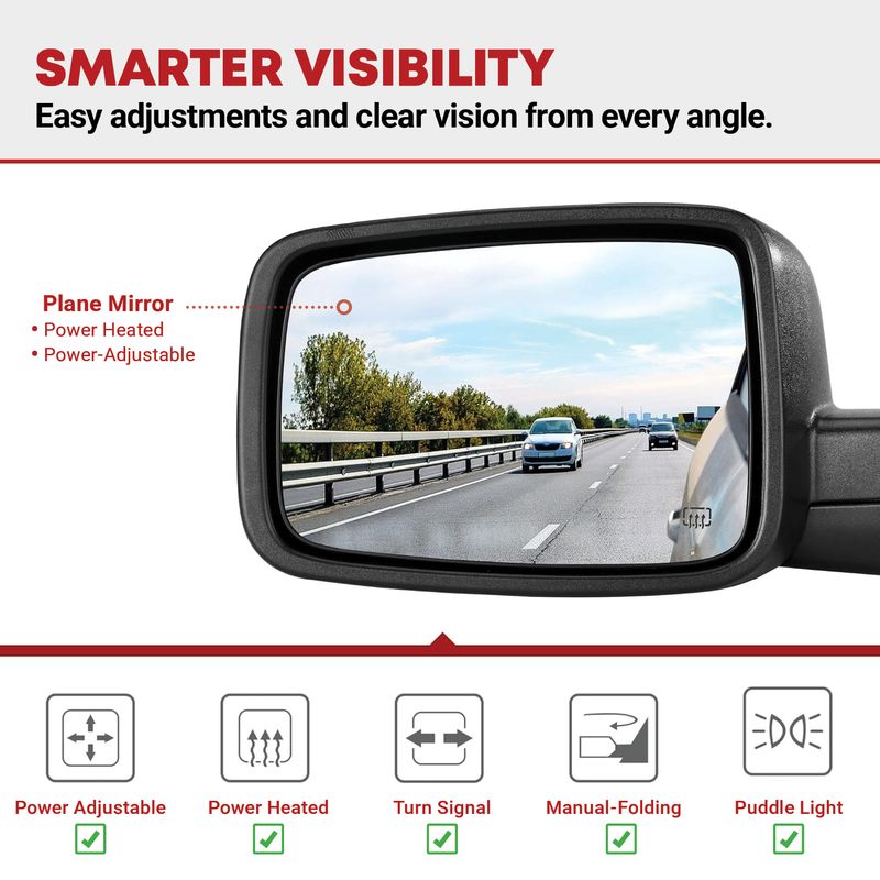 Featuring a power-heated mirror, the manually adjustable convex lens, led turn signal light, puddle light, manual telescoping & manual folding, the multifunctional side mirrors can strikingly enhance your driving experience.