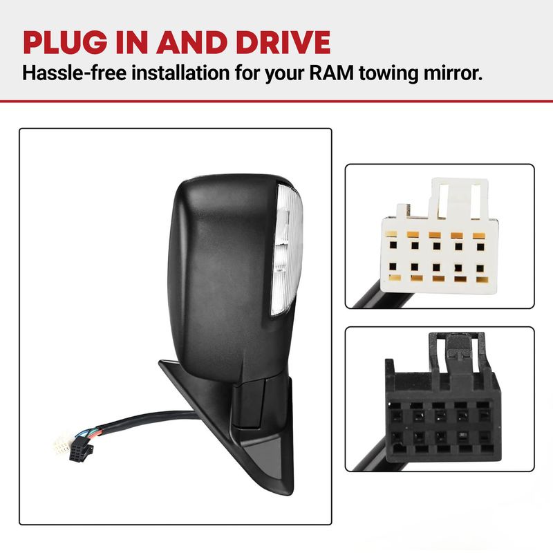 Just simply connect the plugs of the trailer towing mirror to the corresponding power cord, no drilling or modifications are required(professional installation would be highly recommended)