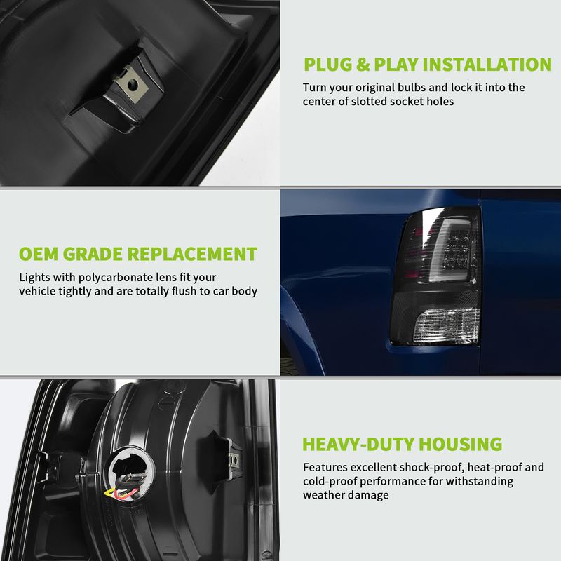 Fitment: LED taillamps are compatible with 2009-2018 Dodge Ram 1500, 2010 2011 2012 2013 2014 2015 2016 2017 2018 Dodge Ram 1500 2500 3500, 19-22 Dodge Ram 1500 Classic, ONLY Compatible with OEM LED Tail Light Models. 1-YEAR WARRANTY.