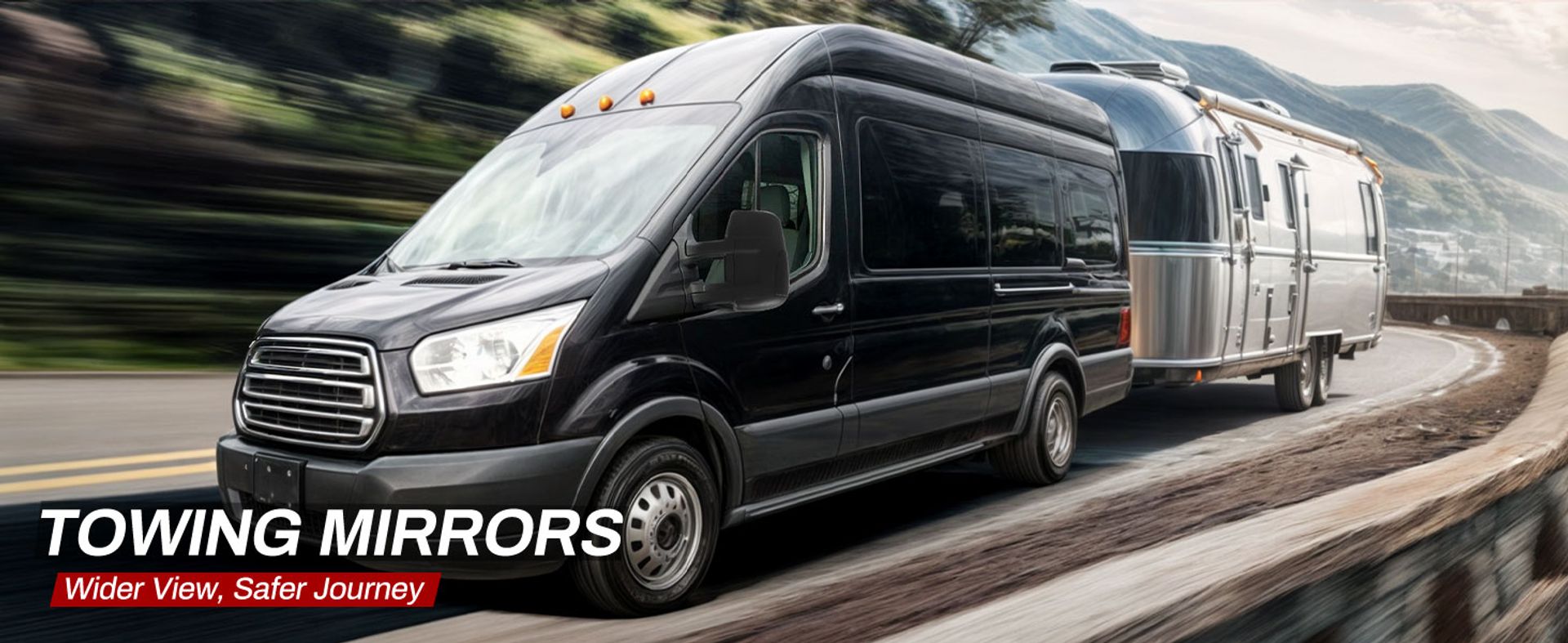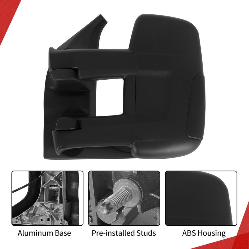 The towing mirrors feature a classic triangle construction, durable aluminum base, and pre-installed studs for a stable installation on your vehicle.