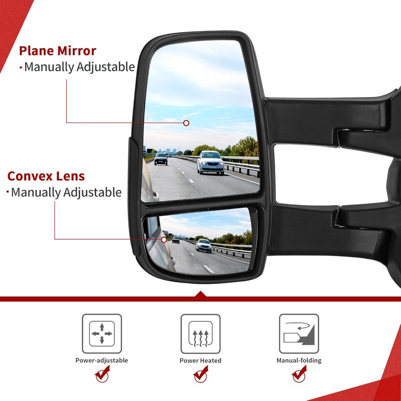 You get a great upgraded towing mirror that meets the same standards set for factory mirrors and they mount in the same location for easy installation.