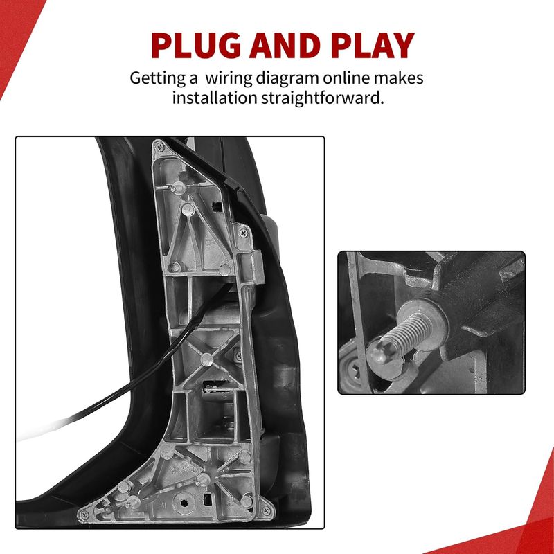 Plug and Play: No need to get your hands dirty with complicated wiring or endless adjustments. This left mirror fits right into your ride like it was meant to be there. Install it and get back on the road in no time. Simple as that