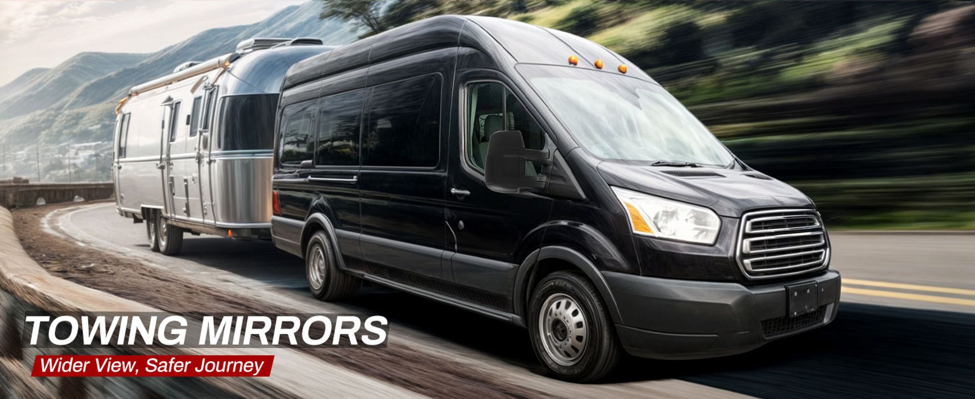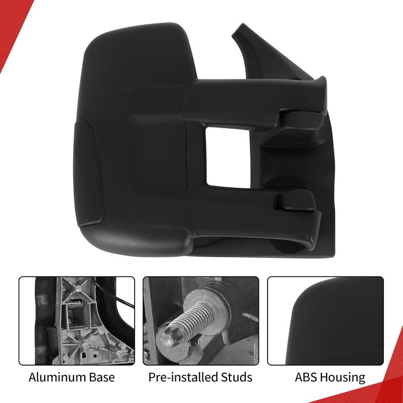 The towing mirrors feature a classic triangle construction, durable aluminum base, and pre-installed studs for a stable installation on your vehicle.