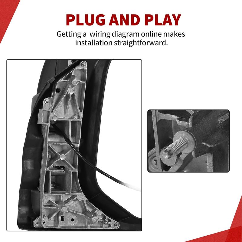 Plug and Play: No need to get your hands dirty with complicated wiring or endless adjustments. This left mirror fits right into your ride like it was meant to be there. Install it and get back on the road in no time. Simple as that