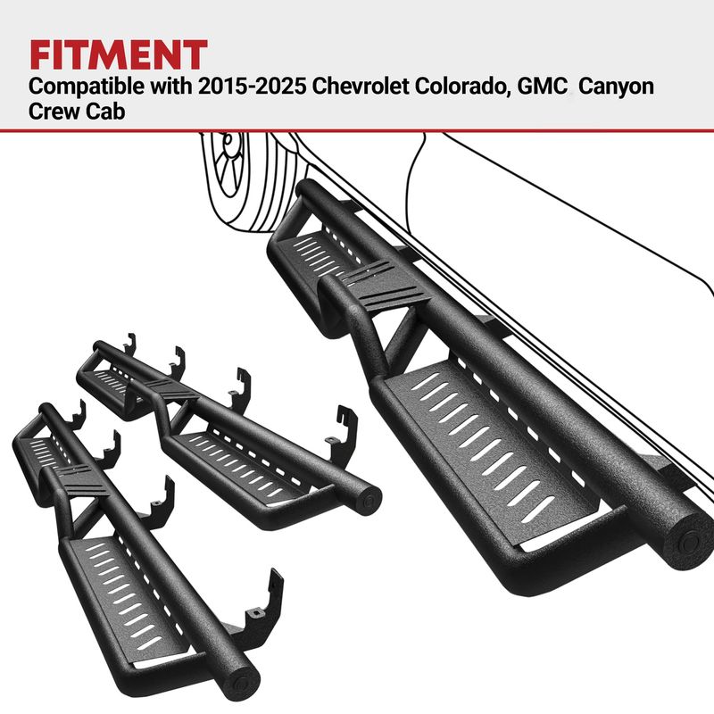 Effortless Setup: Compatible with 2015–2025 Chevy Colorado and GMC Canyon Crew Cab models, these running boards are designed for easy, bolt-on installation—no drilling or special tools needed.