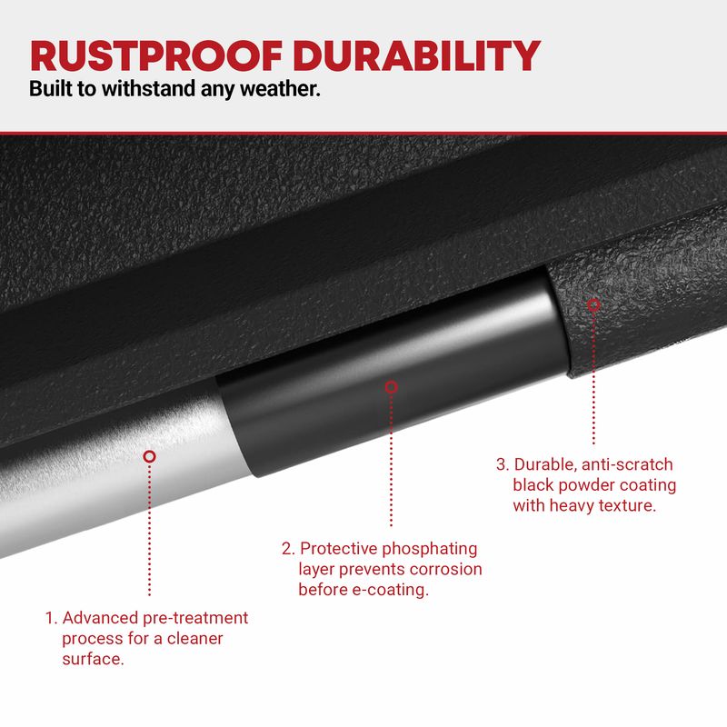 Strong Carbon Steel Build: Crafted from premium-grade carbon steel, these side steps are engineered to handle up to 550 lbs. Their tough construction ensures long-term durability and excellent resistance to bending or warping.