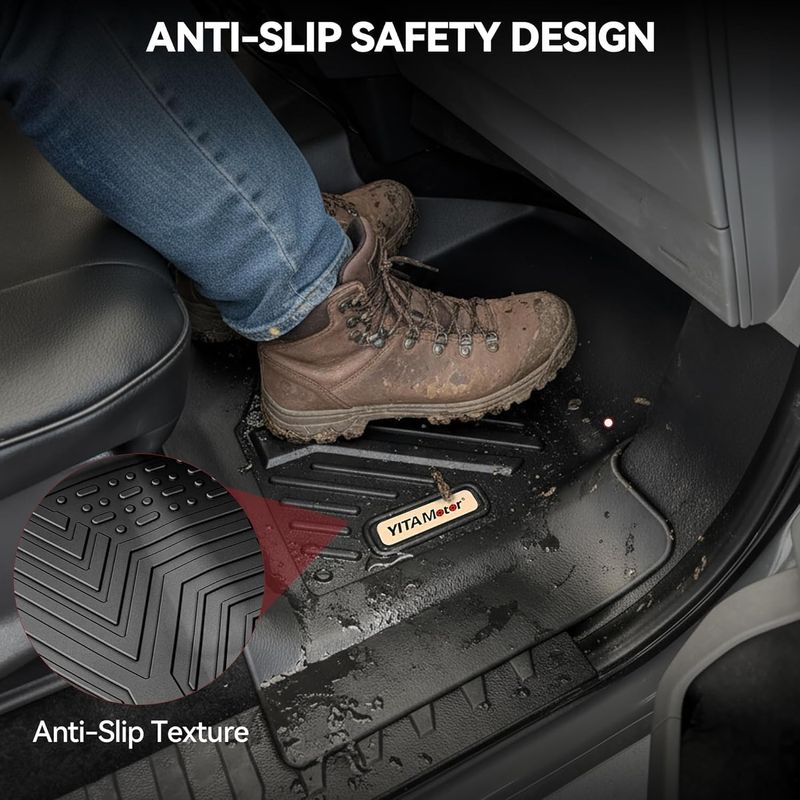 Built For Durability: YITAMOTOR floor liners are made from TPE material featuring high tensity for great comfort and wear-resistance while remaining flexible and user-friendly even in extreme cold or hot environments; Product contains no latex, cadmium, lead, or any harmful PVC.