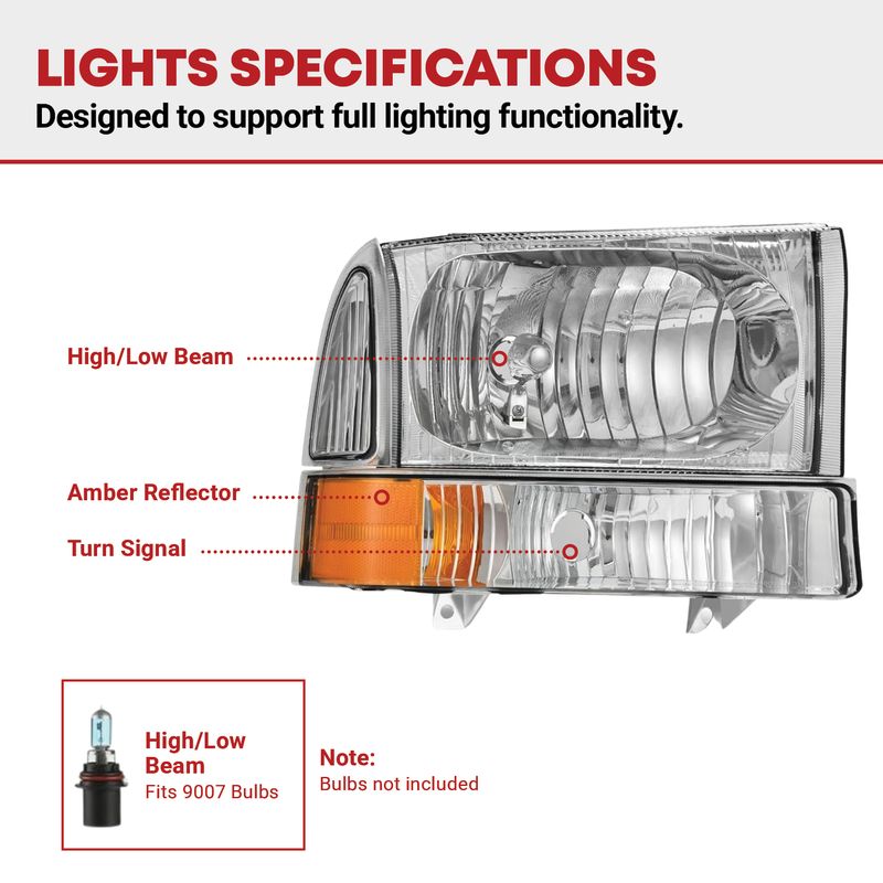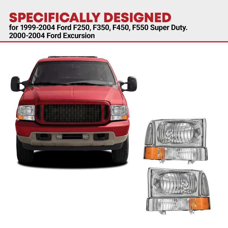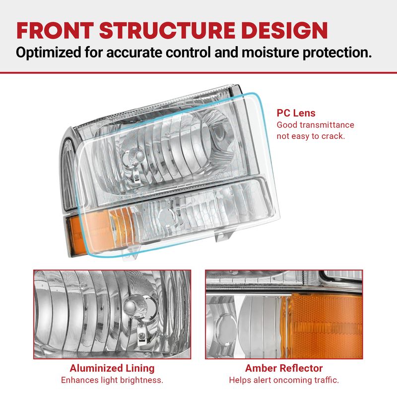 Chrome housing Ford super duty headlight with a Clear Lens which offers better visibility. A sharper, more focused beam ensures a pleasurable driving experience.