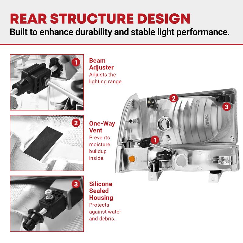 The fully sealed structure improves waterproof rating for effectively preventing moisture from entering the inside of headlights for longer service life.