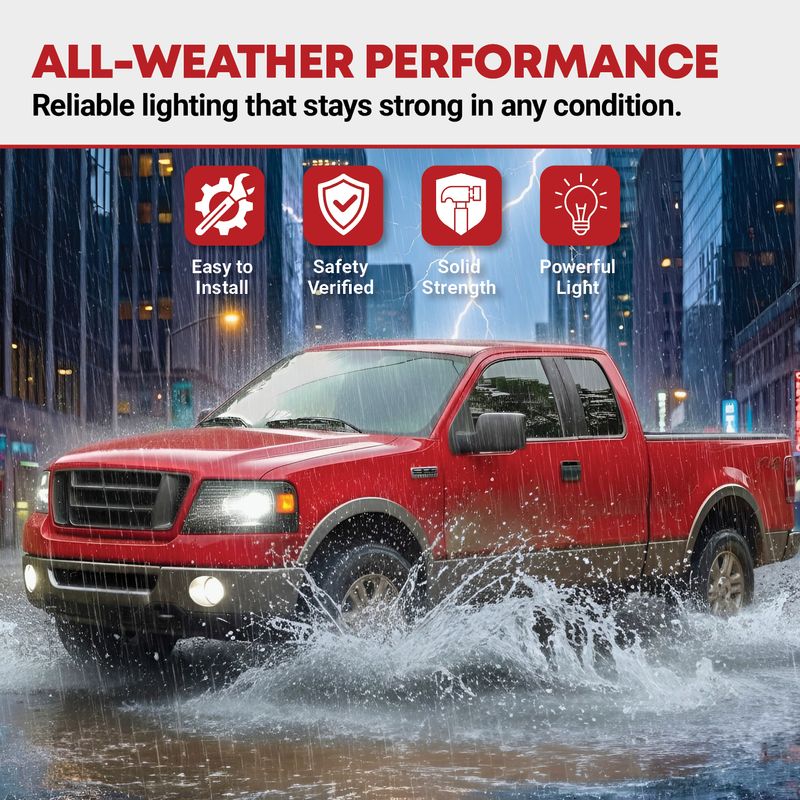 The polycarbonate lens & tough housing are highly resistant to shock, vibration for any tough road; the durable lens is also impervious to fogging, discoloring, and scratch for an enhanced driving experience.