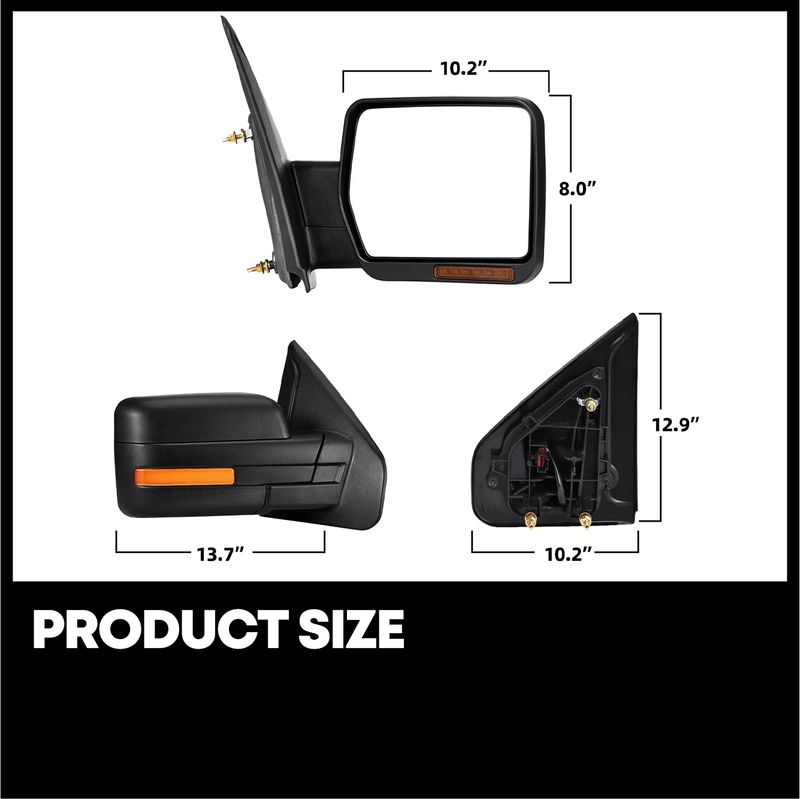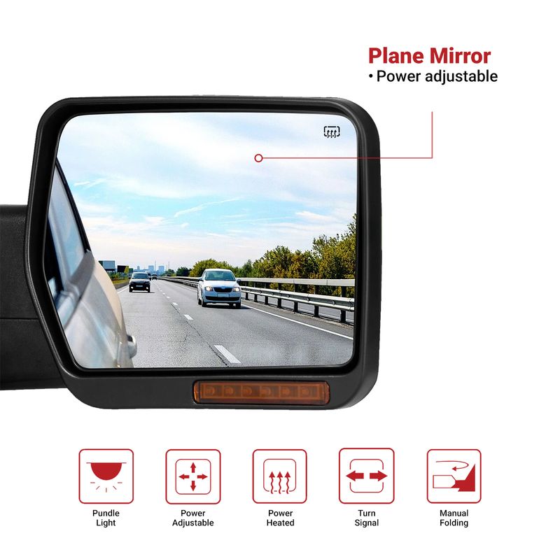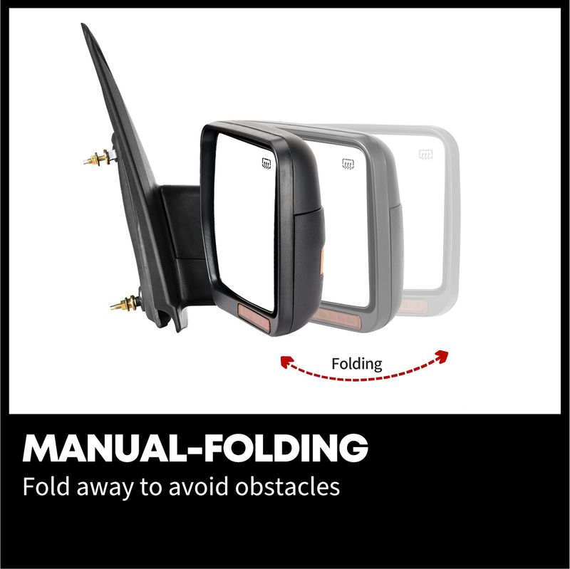 Featuring a power-heated mirror, the manually adjustable convex lens, led turn signal light, puddle light, manual telescoping & manual folding, the multifunctional side mirrors can strikingly enhance your driving experience.