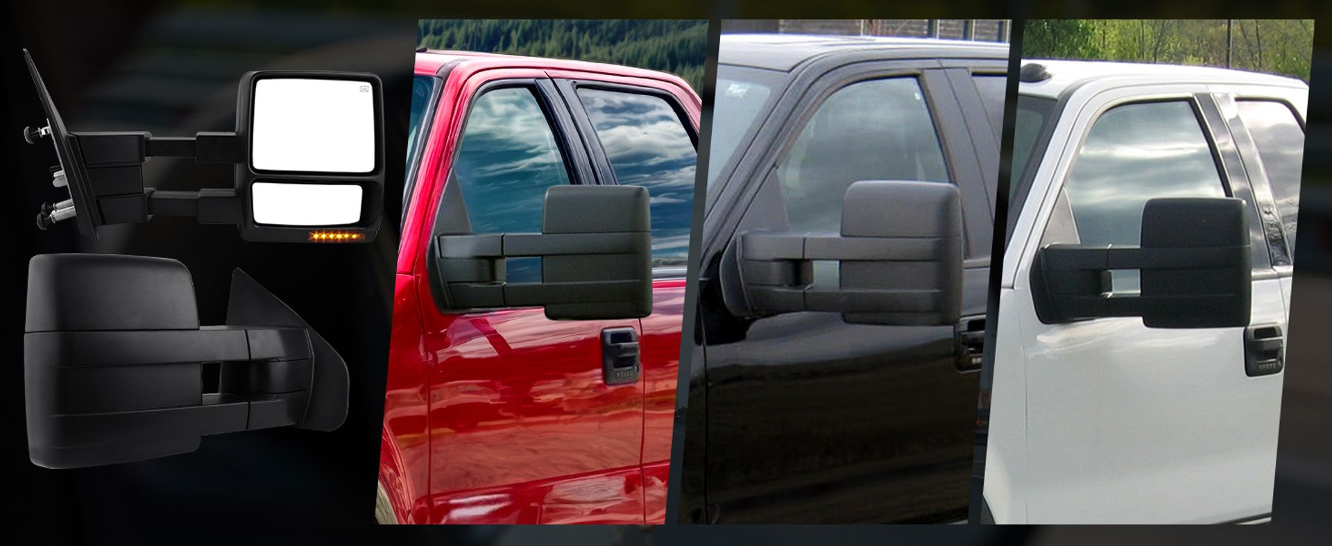 Towing mirrors are specifically designed for towing trailers.YITAMOTOR Towing mirrors extend outward further than the standard truck mirrors, increasing your rearward vision to help provide a safer towing experience. We offer manual and power-adjustable, extendable telescoping towing mirrors to maximize visibility, and are available with the heating feature to eliminate frost. We also have towing mirrors with LED lights that synchronize to your turn signals.