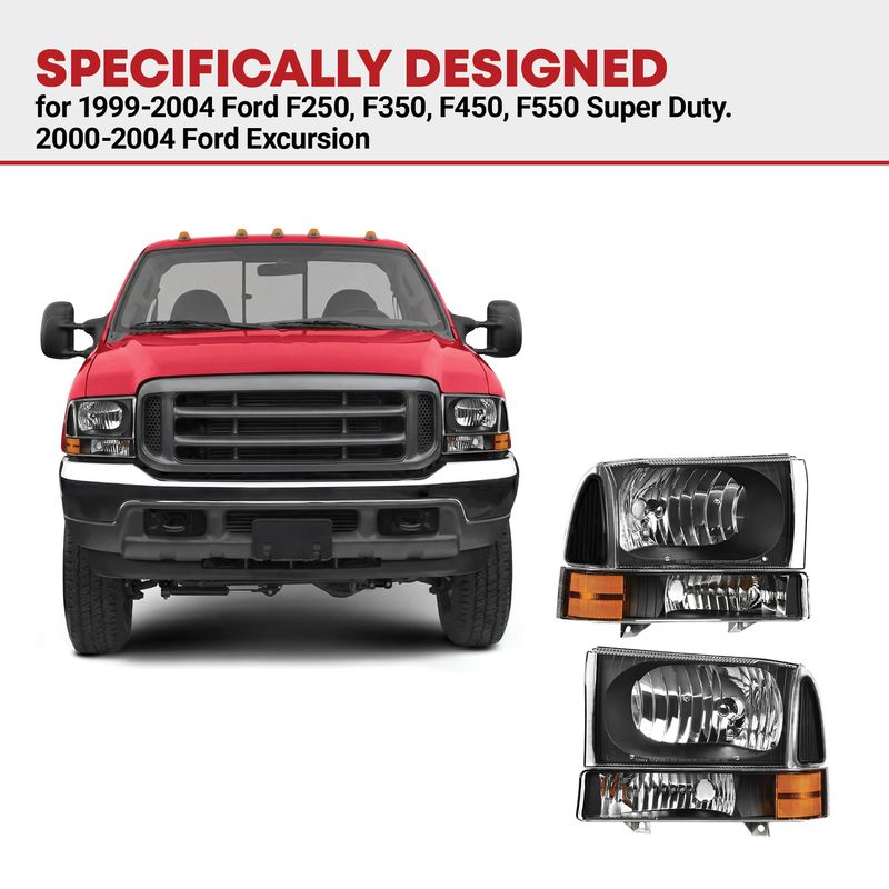 Black housing Ford super duty headlight with a Clear Lens which offers better visibility. A sharper, more focused beam ensures a pleasurable driving experience.
