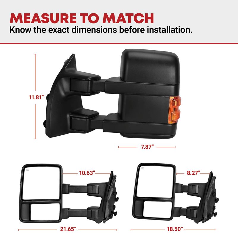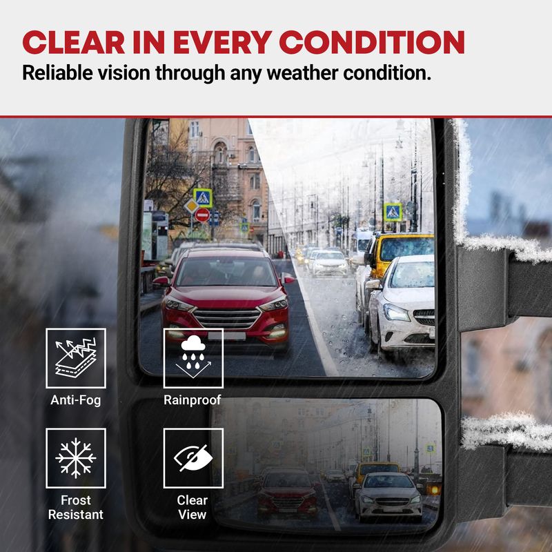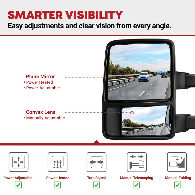 Towing mirrors are specifically designed for towing trailers.YITAMOTOR Towing mirrors extend outward further than the standard truck mirrors, increasing your rearward vision to help provide a safer towing experience. We offer manual and power-adjustable, extendable telescoping towing mirrors to maximize visibility, and are available with the heating feature to eliminate frost.