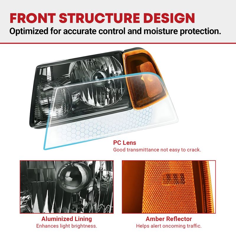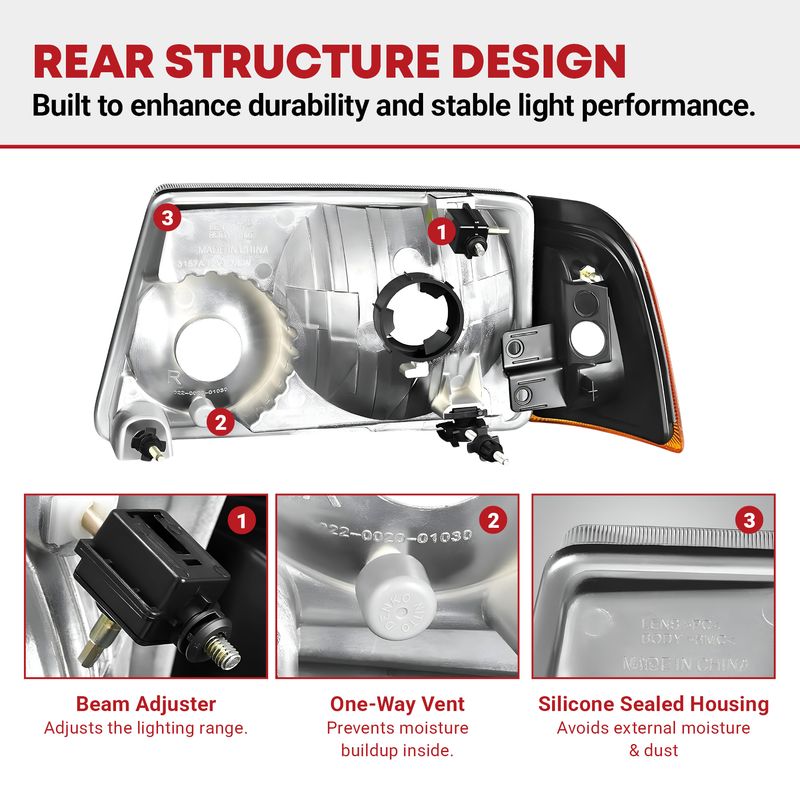 Our headlights are thoroughly tested to deliver smooth operation as well as for impact and heat resistance and endurance against rough road conditions over a long period of time. The units are completely sealed to prevent moisture from being trapped inside the housing.