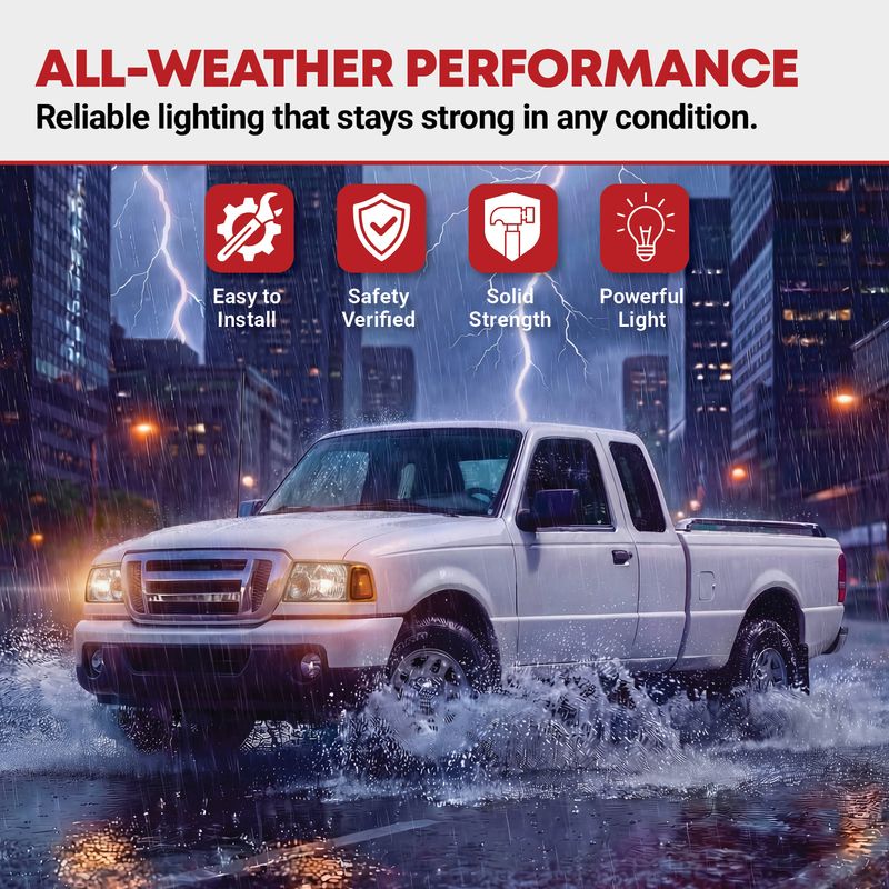 The specially sealed structure features excellent water resistance to prevent moisture from entering inside, brightening up your way clearly ahead when driving on rainy, muddy, and snowy days.