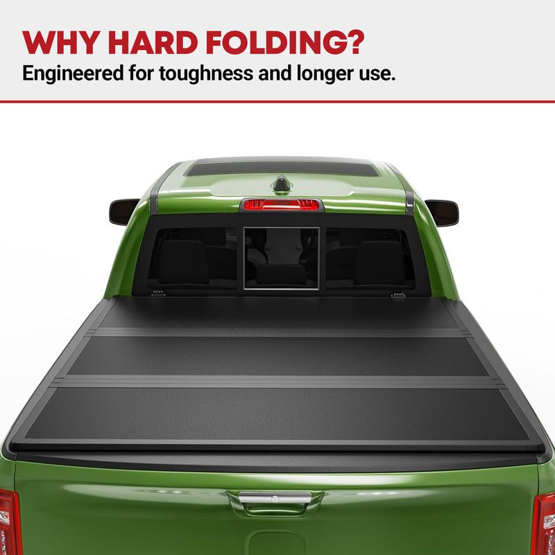 No-drill Installation: Install the hard tri-fold tonneau cover in no time without any drilling or modifications needed; Comes with detailed instructions for added convenience; Note that if your truck has cargo racks, remove them before installing this cover