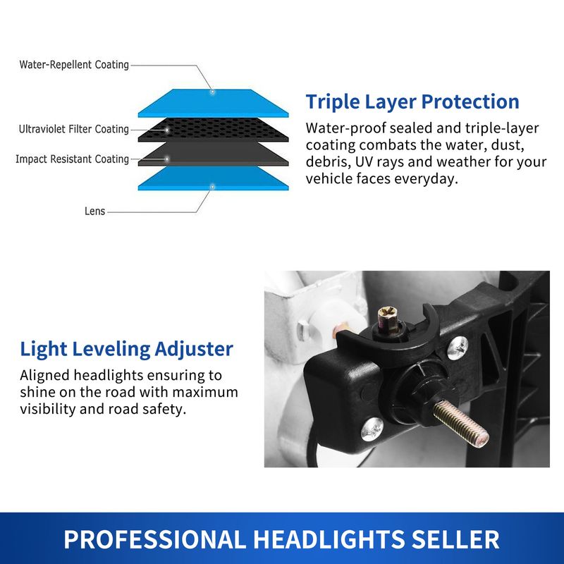 The superior lens features good transmission, high toughness, and excellent UV resistance to prevent yellowing & cracking; and the upgraded housing is shock-proof and heat-proof for ensuring better durability compared with other headlights.