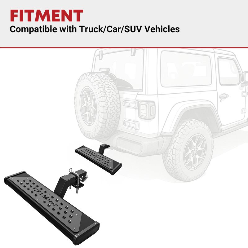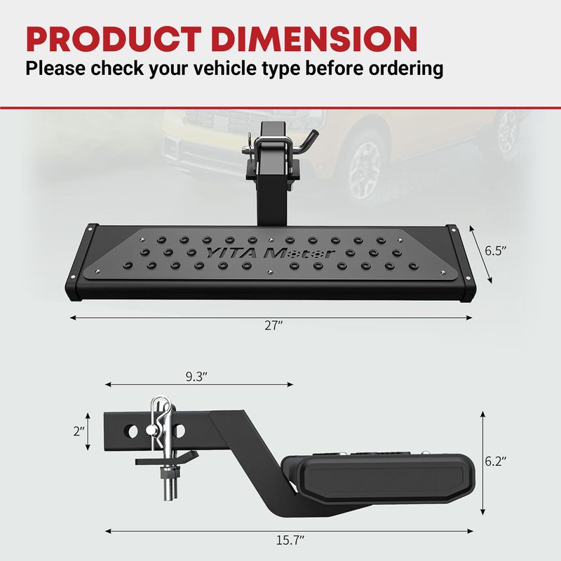 6.5" wide towing hitch steps offer you a secure and slip-proof step for peace of mind.