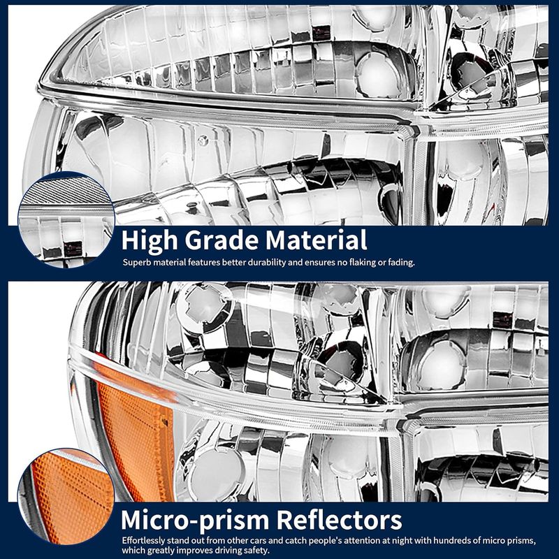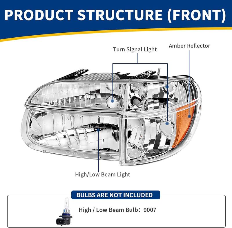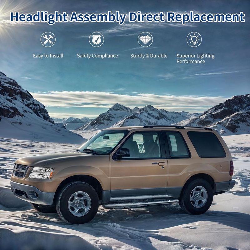 Vehicle compatibility: headlights assembly compatible with 1995 1996 1997 1998 1999 2000 2001 Ford Explorer / 1997 Mercury Mountaineer; high/low beam: 9007; bulbs are not included