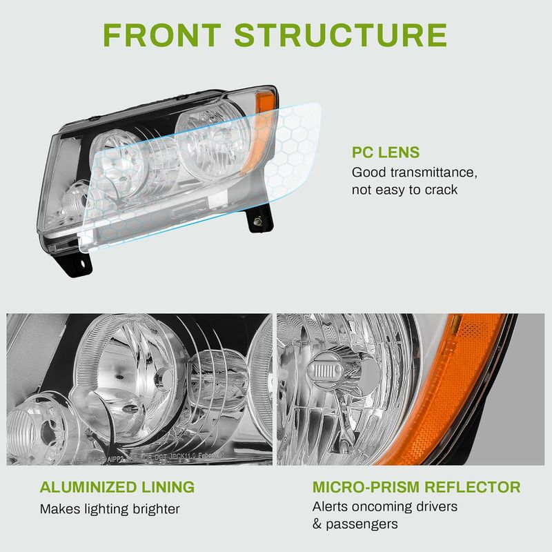 Vehicle compatibility: the headlights assembly is compatible with 2011 2012 2013 11-13 Grand Cherokee; high beam bulb type: HB3; low beam bulb type: H11; bulbs are not included