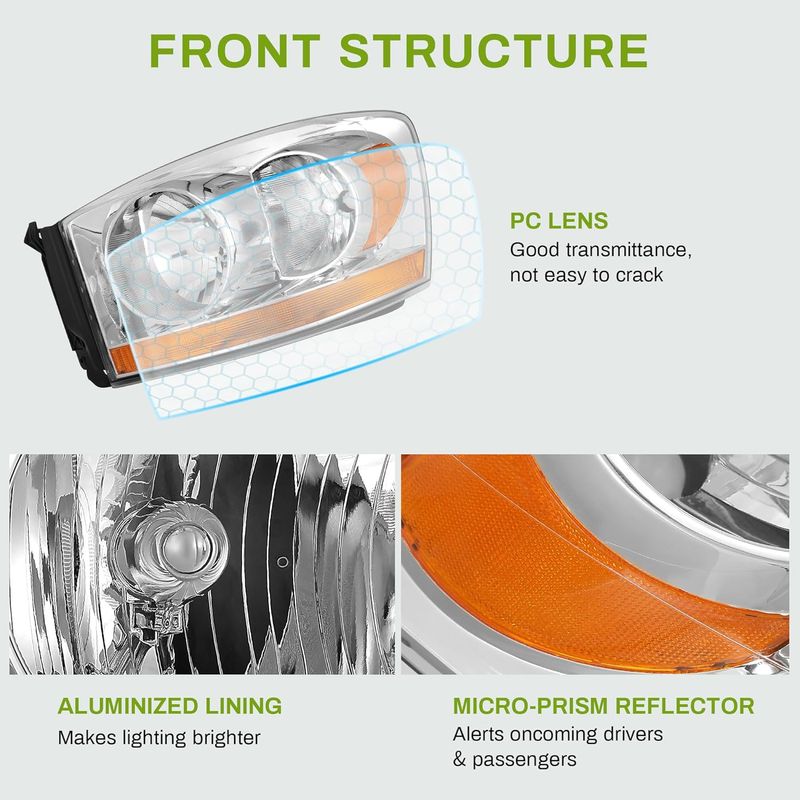 Vehicle compatibility: the headlights assembly is compatible with 2006 2007 2008 Dodge Ram 1500, 2006 2007 2008 2009 Ram 2500 3500 with Amber Cab Clearance Light.Low Beam/ High Beam H13(Bulb are not included)