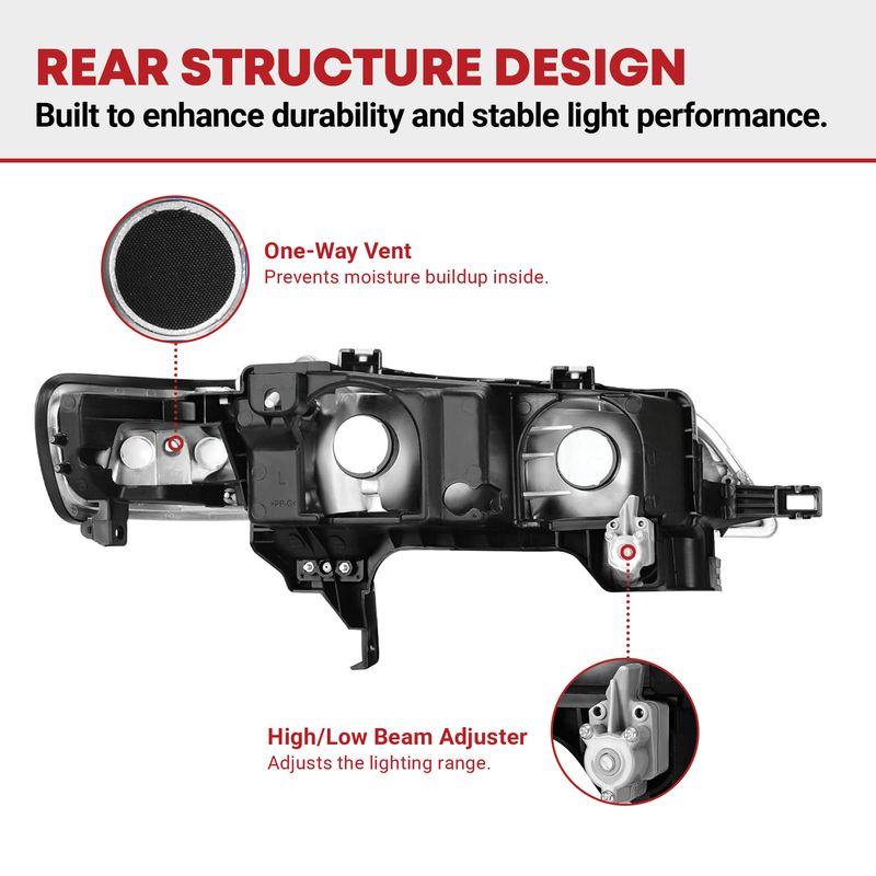 Improved illumination: the integrated metalized reflectors of this headlight assembly increase light distance for better visibility & driving safety in any dusky conditions