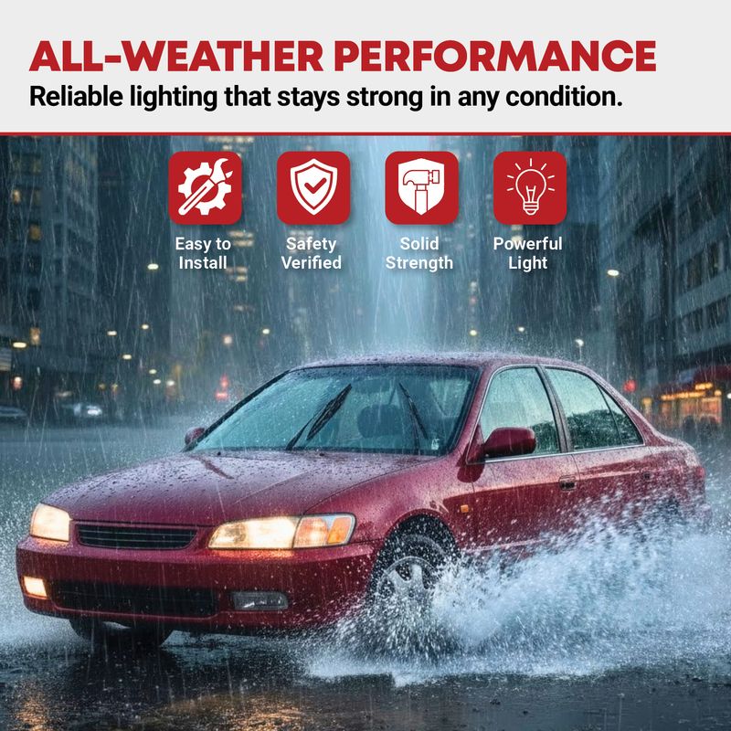 The specially sealed structure features excellent water resistance to prevent moisture from entering inside, brightening up your way clearly ahead when driving on rainy, muddy, and snowy days.
