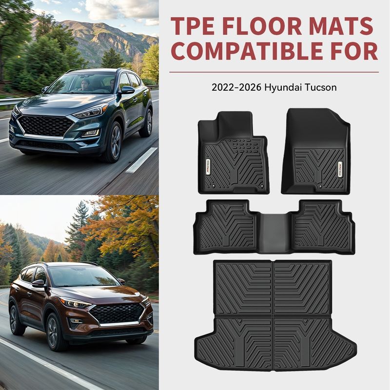 Custom Fit: These floor mat sets are compatible with 2022 2023 2024 2025 2026 Hyundai Tucson, not for vehicles with vinyl floors; 3D laser scanning technology gives full protection to both the front and back, Please remove old floor mats before installing new ones.