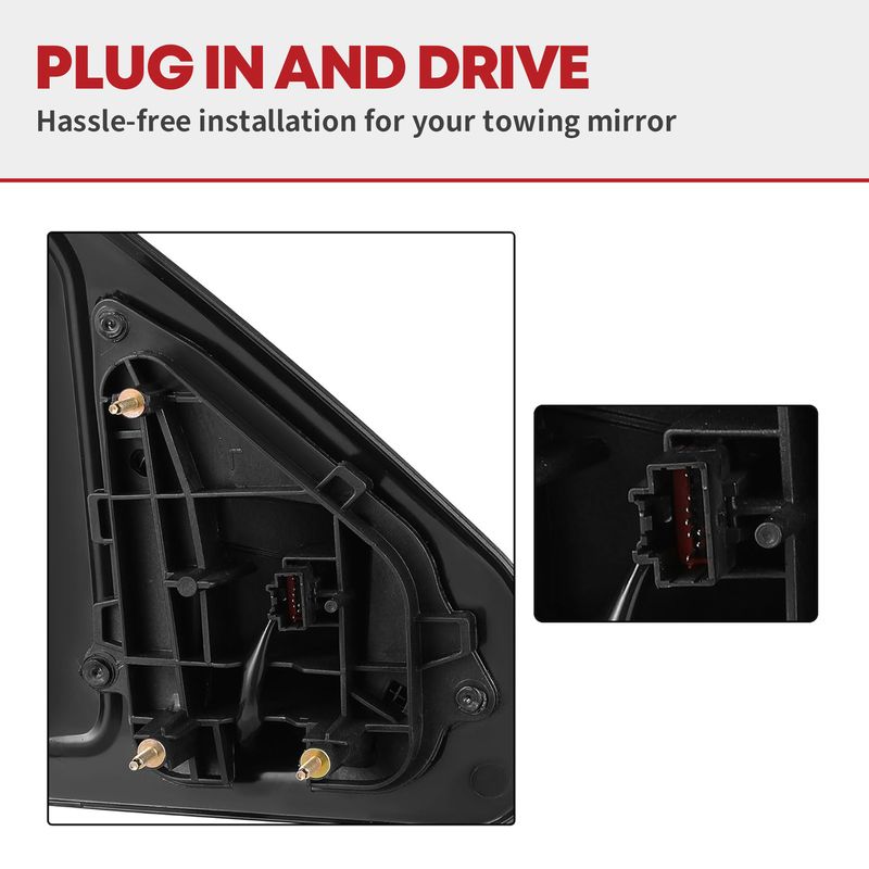 Enjoy hassle-free installation by connecting the trailer towing mirror plugs to the corresponding power cord, no modifications or drilling are needed.